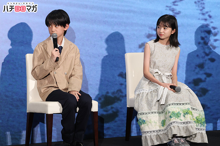 その後、キャストが1人ずつ思いを語るなか、本作で演技初挑戦にして主人公・貴樹(松村)の幼少期を演じた上田さんは「緊張しています」とポツリ。